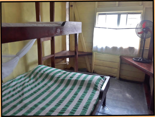 ohne Ventilator, Handtuch und Gaze vor den Fenstern.