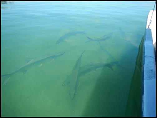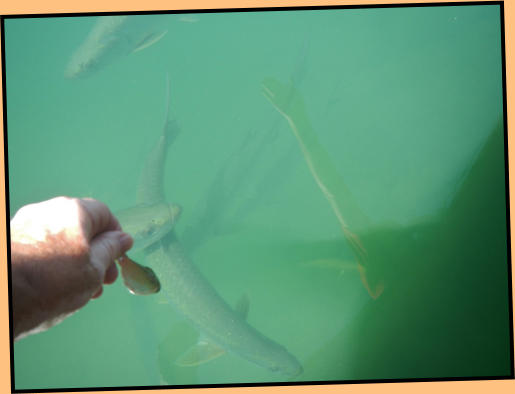 Erste Station ist diese Fischemit der Hand zu füttern. Es sind Tarpone.